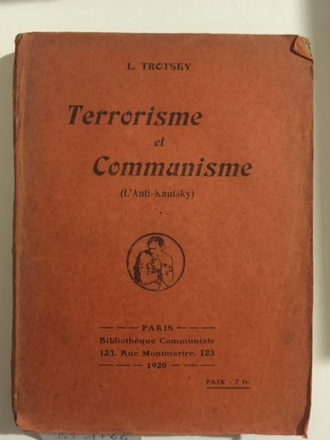 Trotzki, Leo. Terrorisme et Communisme. (L’Anti-Kautsky). Paris, Bibliothèque Communiste, 1920. 8° / Oktav. 254 pp. Broché. Brunée. quelques traits en marge au crayon à papier sinon bon état. The spine and paper is browned