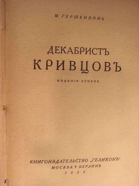 Gershenson / Gersenzon, Dekabrist Krivzov’.