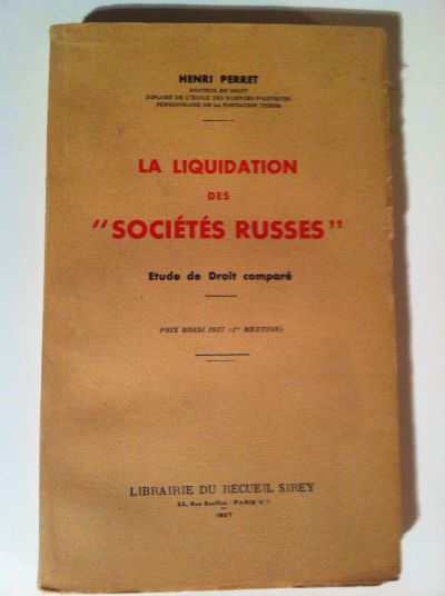 Perret, La Liquidation des "Sociétés Russes". Etude de Droit comparé.