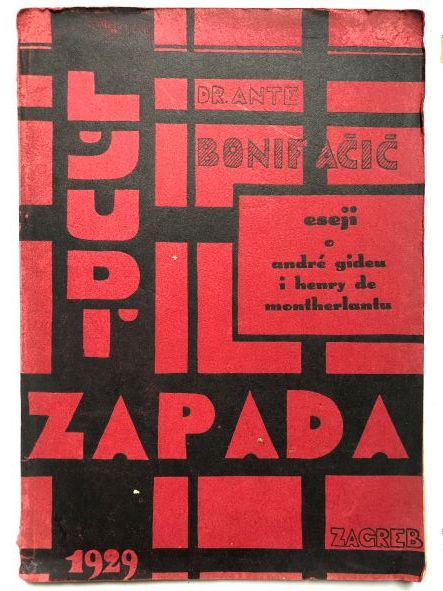 Bonifacic, Antun. Ljudi Zapada. Zagreb, Tiskara „Merkantile“, 1929. Gr. 8°. 67 pages. Original brochure with the constructivistic cover. The margins slightly bend, the spine slightly damaged, with a few underlinings in pencil.