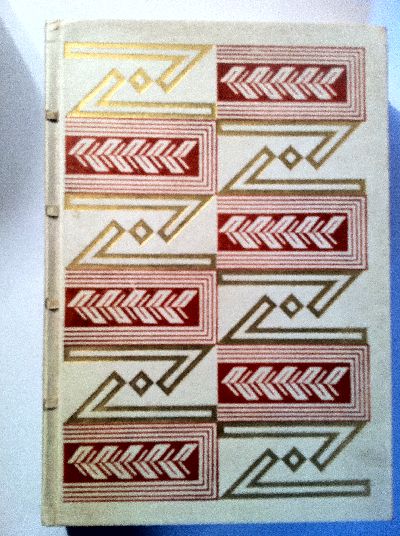 Tilschová, Anna Maria. Zlá tma. * a master binding* Povídky. 1918-1927. Prag, Sfinx, (1928). 172 Seiten / pages., 2 Blätter / leaves. Frontispiz von F. Hrímal. Reich dekorierter Pergament-Handeinband auf 4 Bünden. Umschlag v. Josef Capek mitgebunden. – Rücken gering geblichen. Richly decorated vellum on four boards, a masterpiece of czech bookbinding. The orignal covers by Capek are inbound. Eins von 100 nummerierten und von der Verfasserin signierten Exemplaren auf Simili-Japan. A rare copy of one of the 100 signed copies.